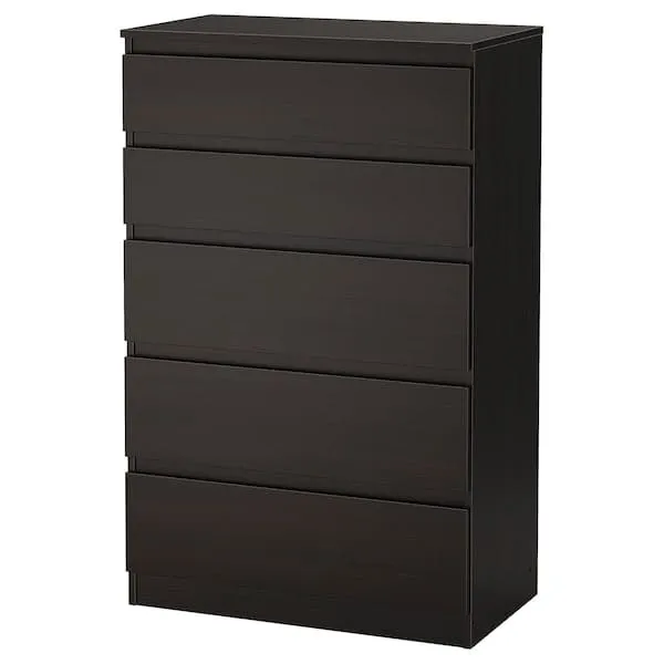 KULLEN - Chest of 5 drawers, black-brown, 70x112 cm