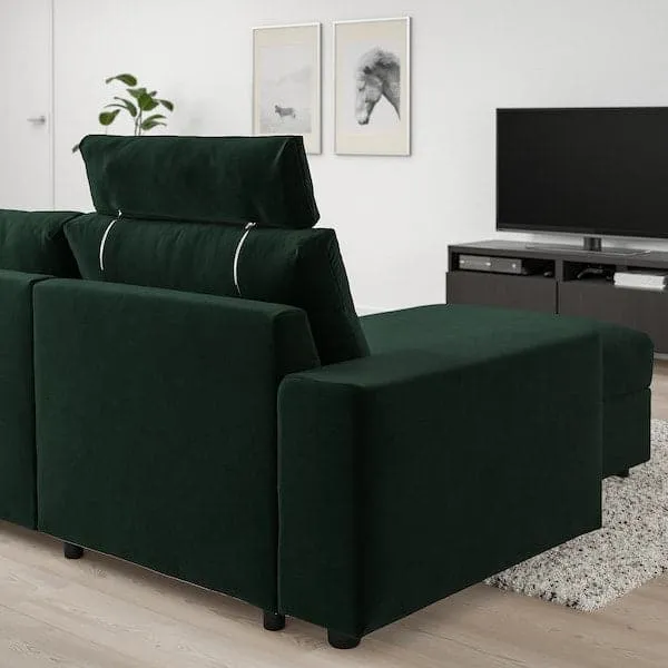 VIMLE 3-seat sofa with chaise longue, with wide armrests with headrest/Djuparp dark green
