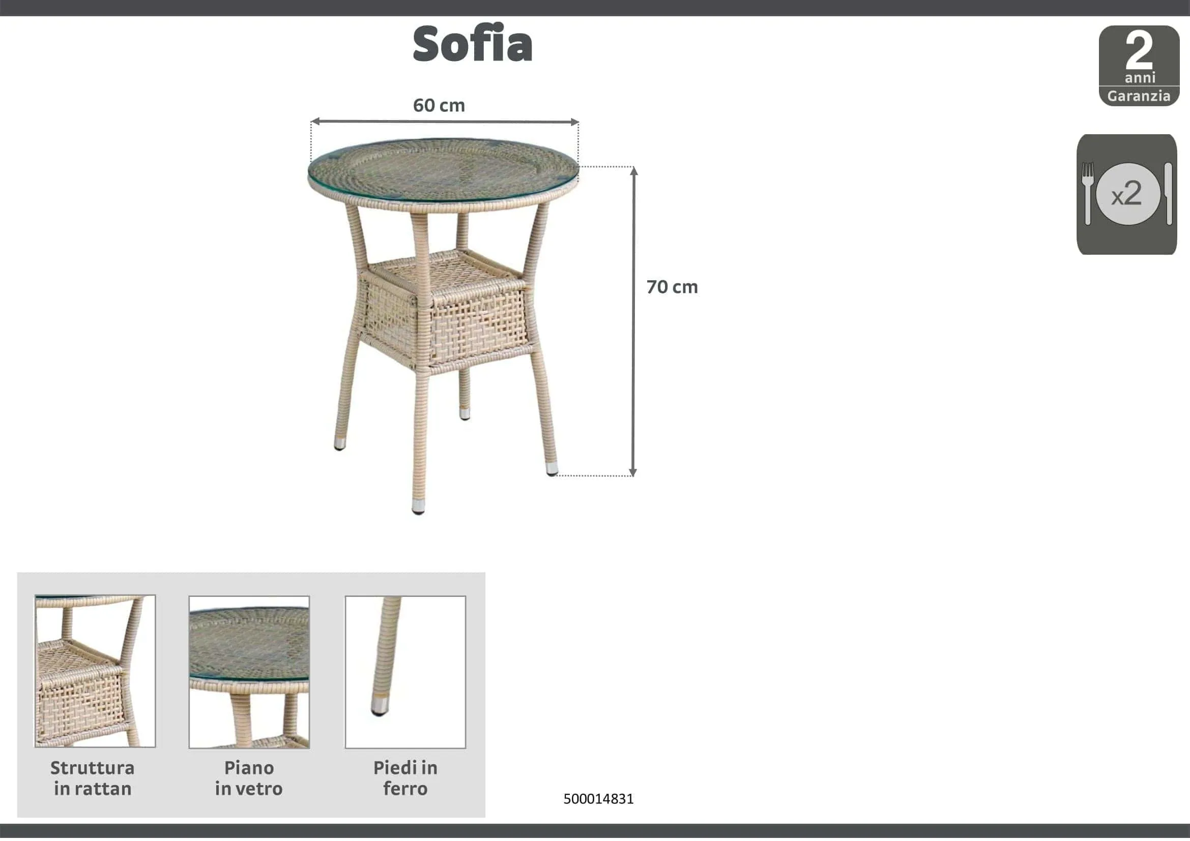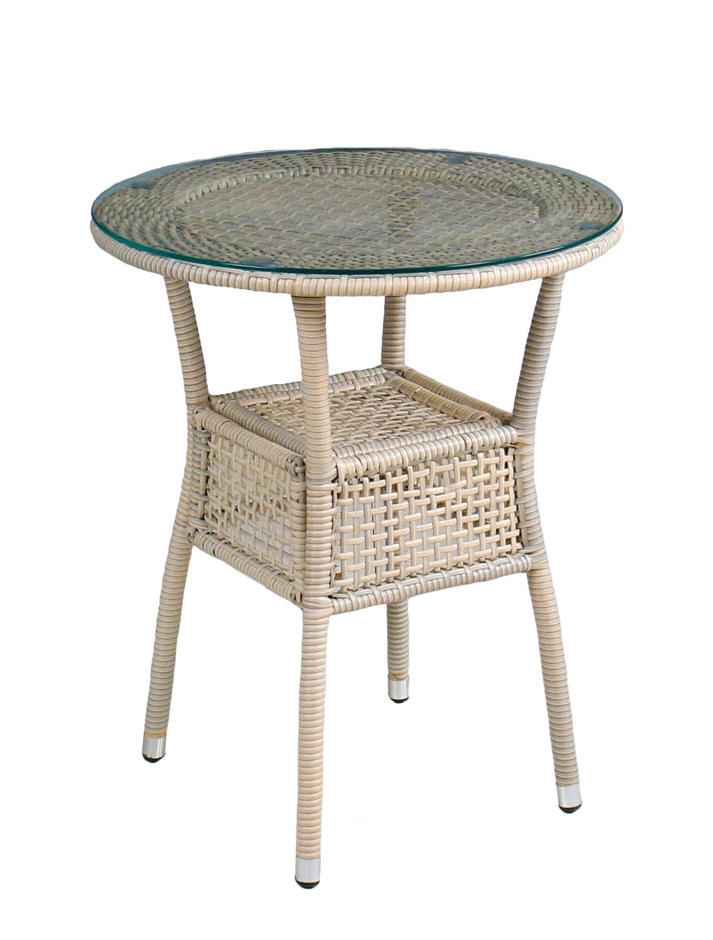 SOFIA COFFEE TABLE IN STEEL Diam 60X 72h covered in synthetic rattan with 6mm glass top