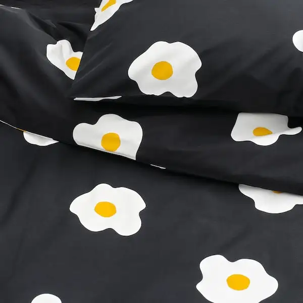 ÖGONLOCKSMAL duvet cover and pillowcase, black/white/yellow