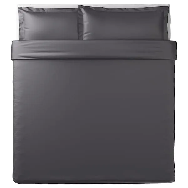 LUKTJASMIN duvet cover and 2 pillowcases, dark grey, 220x240 cm
