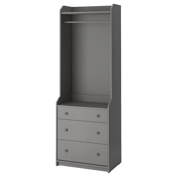 HAUGA open wardrobe with 3 drawers, grey, 70x199 cm