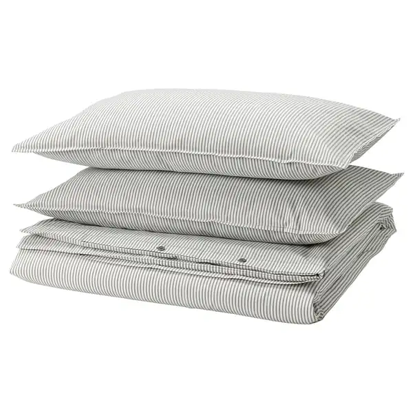 SOLFIBBLA duvet cover and 2 pillowcases, grey white/stripe, 240x220/50x80 cm
