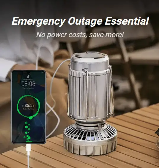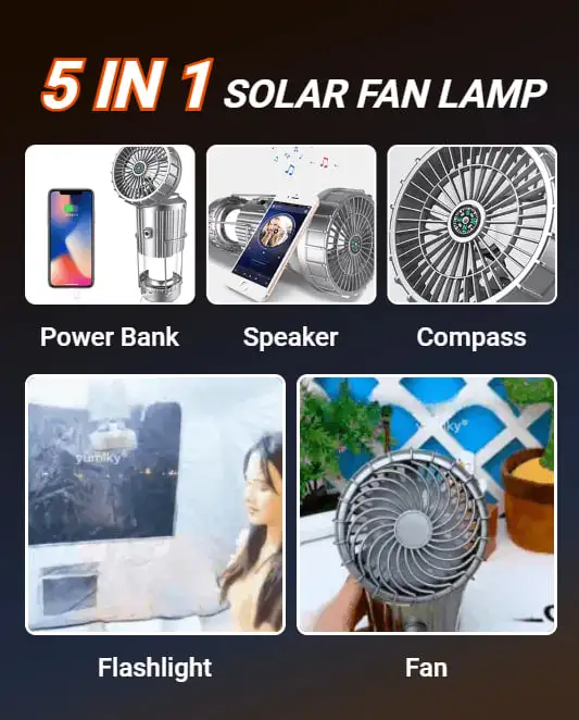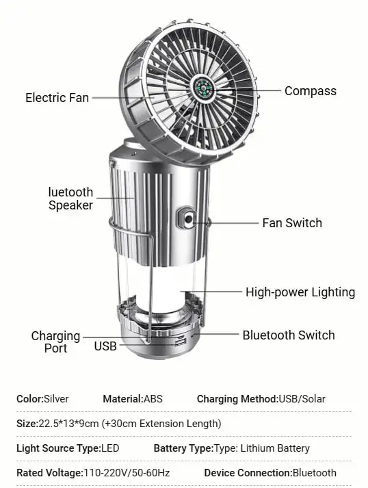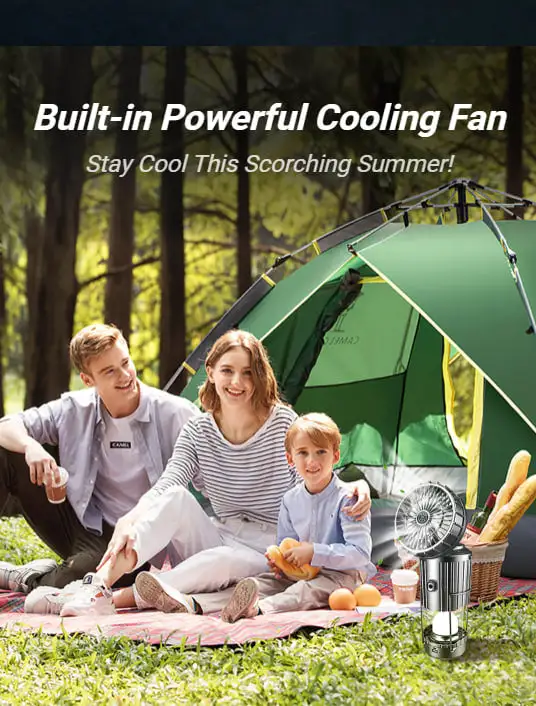 3 Power Sources Design (Solar/USB Rechargeable/AAA Battery Powered), Portable, Lightweight, Super Bright, Adjustable, with Tent Fan