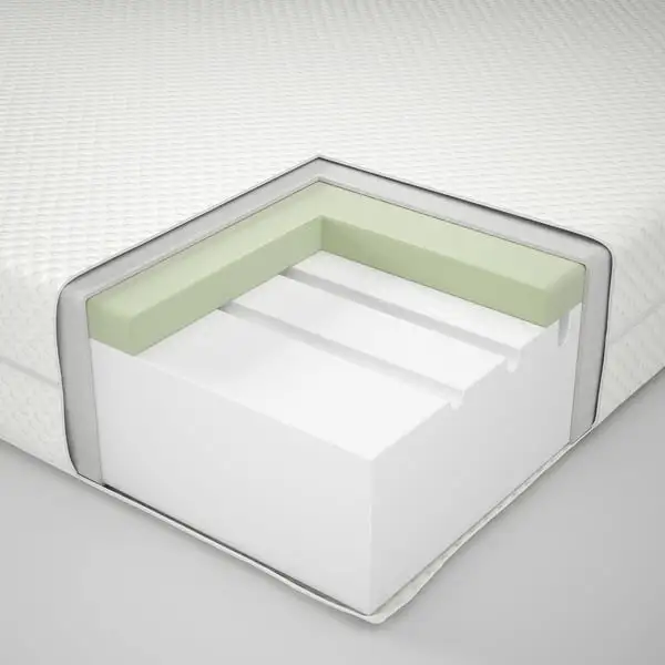 A 16 cm high 2-layered firm foam mattress. The top layer of memory foam provides pressure relief, while your body is supported in all areas from comfort zones – and the soft cover is washable.