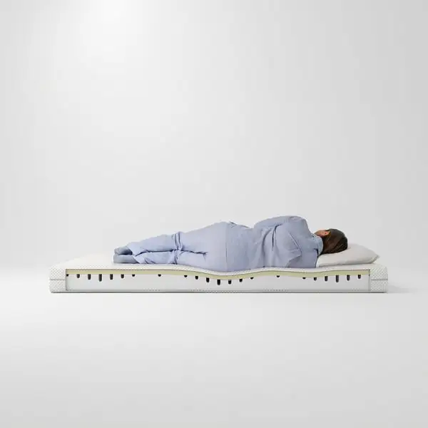 A 16 cm high 2-layered medium-firm foam mattress. The top layer of plush foam provides pressure relief, while your body is supported in all areas from comfort zones – and the soft cover is washable.