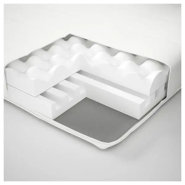This simple medium-firm foam mattress is 12 cm thick. Two layers of resilient foam is combined with a soft layer of wadding in the washable quilted cover.