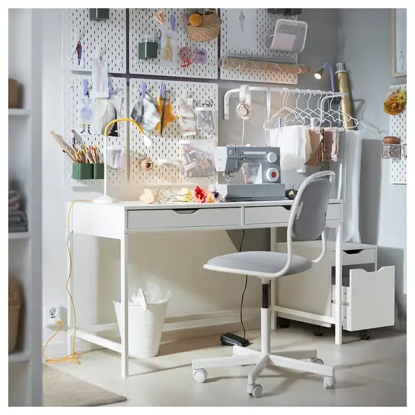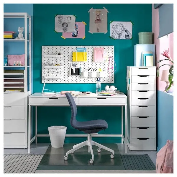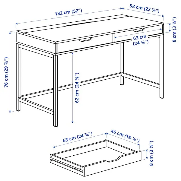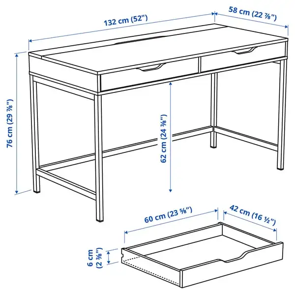 ALEX desk combines smart storage with sleek design. You’ll love the built-in drawers keeping things tidy, the generous worktop, and cable management. Its minimalist style fits any corner or stands freely in the room, offering top functionality and style.