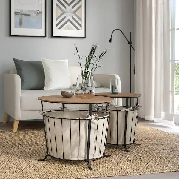 Table and storage in one, suitable anywhere in your home. The metal base and wooden table top create a naturally warm and rustic look. Perfect for everything you want close by – from newspapers to throws.