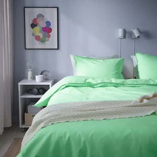 ÄNGSLILJA duvet cover set in light green gives your bedroom a fresh summer vibe and invites you to snuggle up. Made of pure cotton that breathes, absorbs moisture and keeps you comfy through the night.
