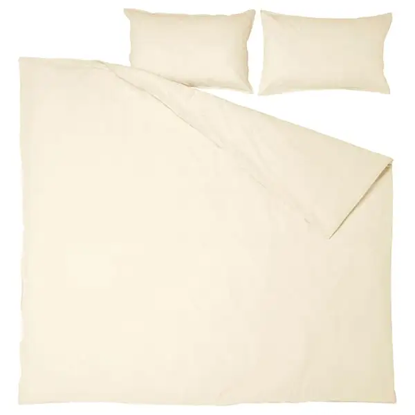 ÄNGSLILJA duvet cover set is made of 100% pre-washed cotton that feels soft, breathes and absorbs moisture. The fabric is undyed and unbleached which gives it a natural tone.