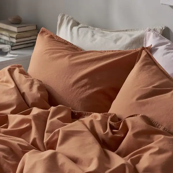 ÄNGSLILJA duvet cover set is made of 100% pre-washed cotton that feels soft, breathes and absorbs moisture. The earthy tone gives your bedroom a calm and cosy vibe.