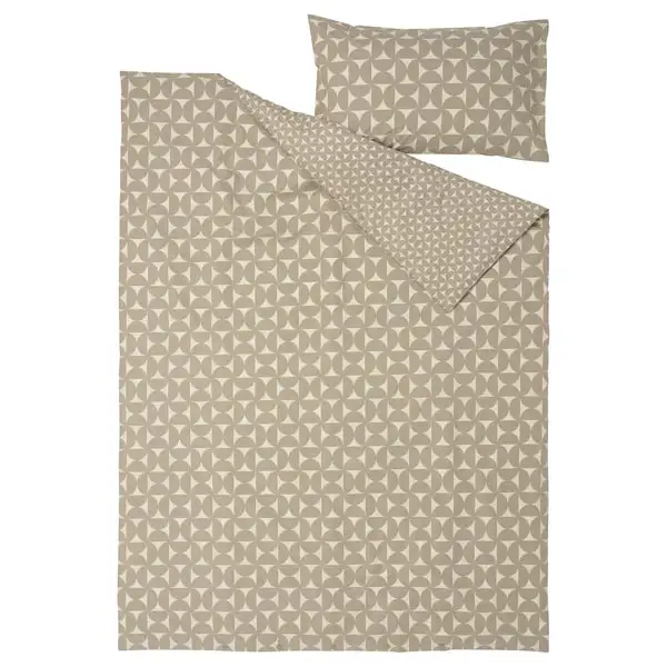 ÄNGSNEJLIKA duvet cover and pillowcase, grey-beige/off-white, 150x200/50x80 cm