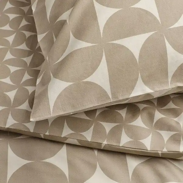 Duvet cover set with graphic pattern in easy-to-coordinate grey-beige/off-white tones. The dense percale quality and fine cotton/viscose yarn make the fabric cool, crisp and soft.
