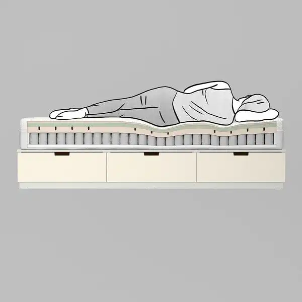 A medium-firm 24 cm high hybrid mattress. Memory foam combined with plush foam, a layer of pocket springs and comfort zones for even distribution of body weight – and a soft washable cover.