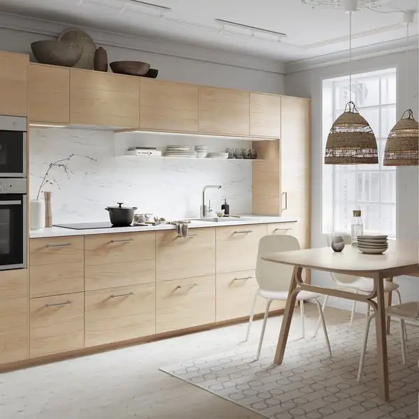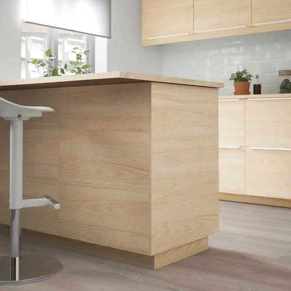 ASKERSUND fronts blend beauty and practical function. The easy-clean melamine surface withstands moisture, scratches and bumps, while the light ash wood pattern both looks and feels natural and vibrant.