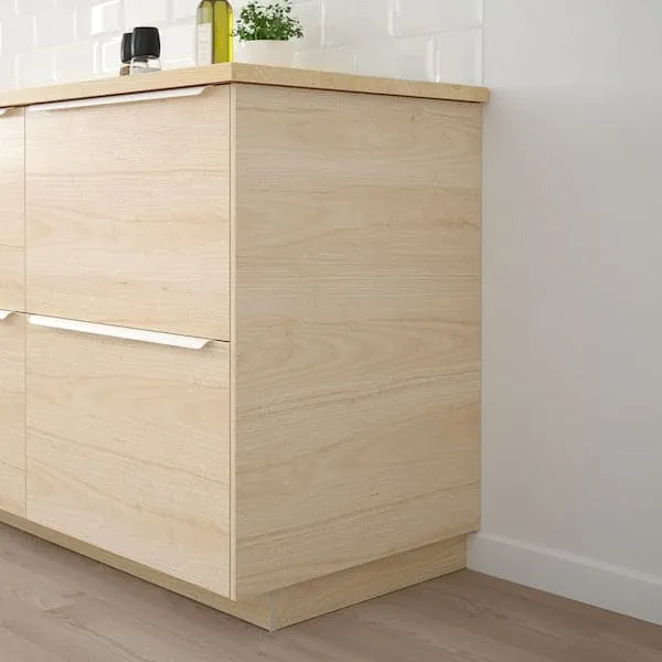 ASKERSUND fronts blend beauty and practical function. The easy-clean melamine surface withstands moisture, scratches and bumps, while the light ash wood pattern both looks and feels natural and vibrant.