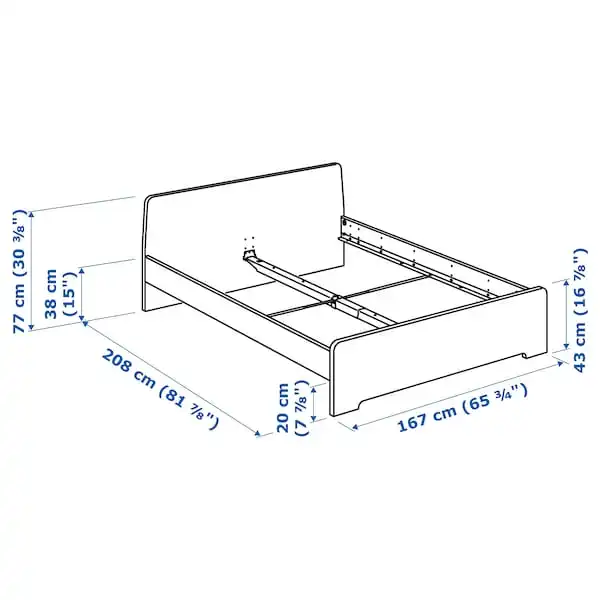 Transform your bedroom with the ASKVOLL bed frame in elegant white, measuring 160x200 cm. Its versatile design allows it to stand out or seamlessly blend with your decor. The low headboard is ideal for under windows or in sloped-ceiling rooms, offering style and functionality. Elevate your space with ASKVOLL, where comfort meets aesthetic appeal.