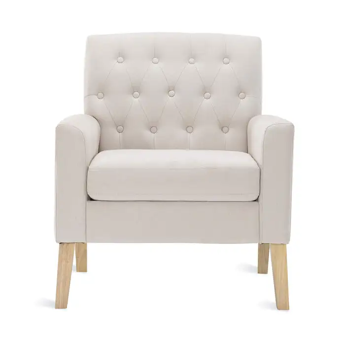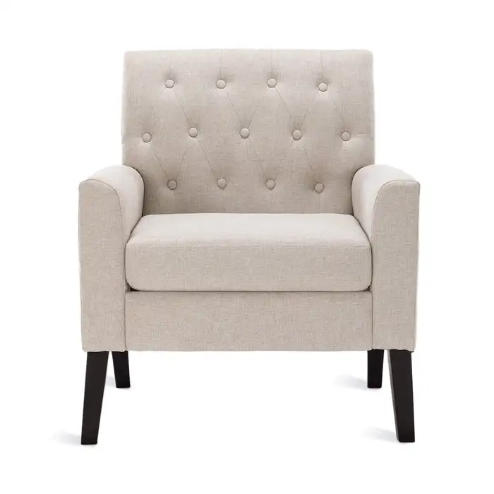 Quality & Durable Material:The feet are crafted from solid wood and have sturdy support with natural wood grain. A tear-resistant linen-blend upholstery covers foam cushioning, making this armchair a comfortable place to relax.