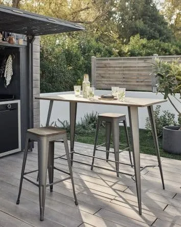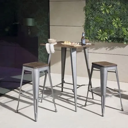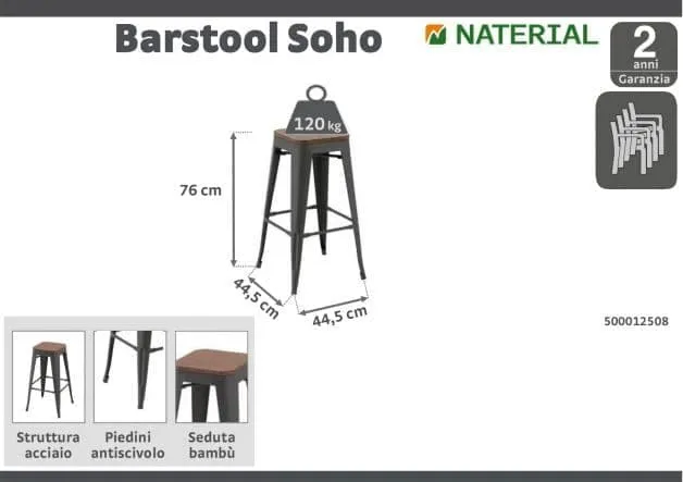 Soho series stool The industrial style of the Soho stool, is adaptable to any environment. Ideal when combined with the tall table from the same series.The seat is made of bamboo wood.The stools are stackable to optimize space during winter.Can be combined with the tall table from the same series.