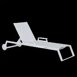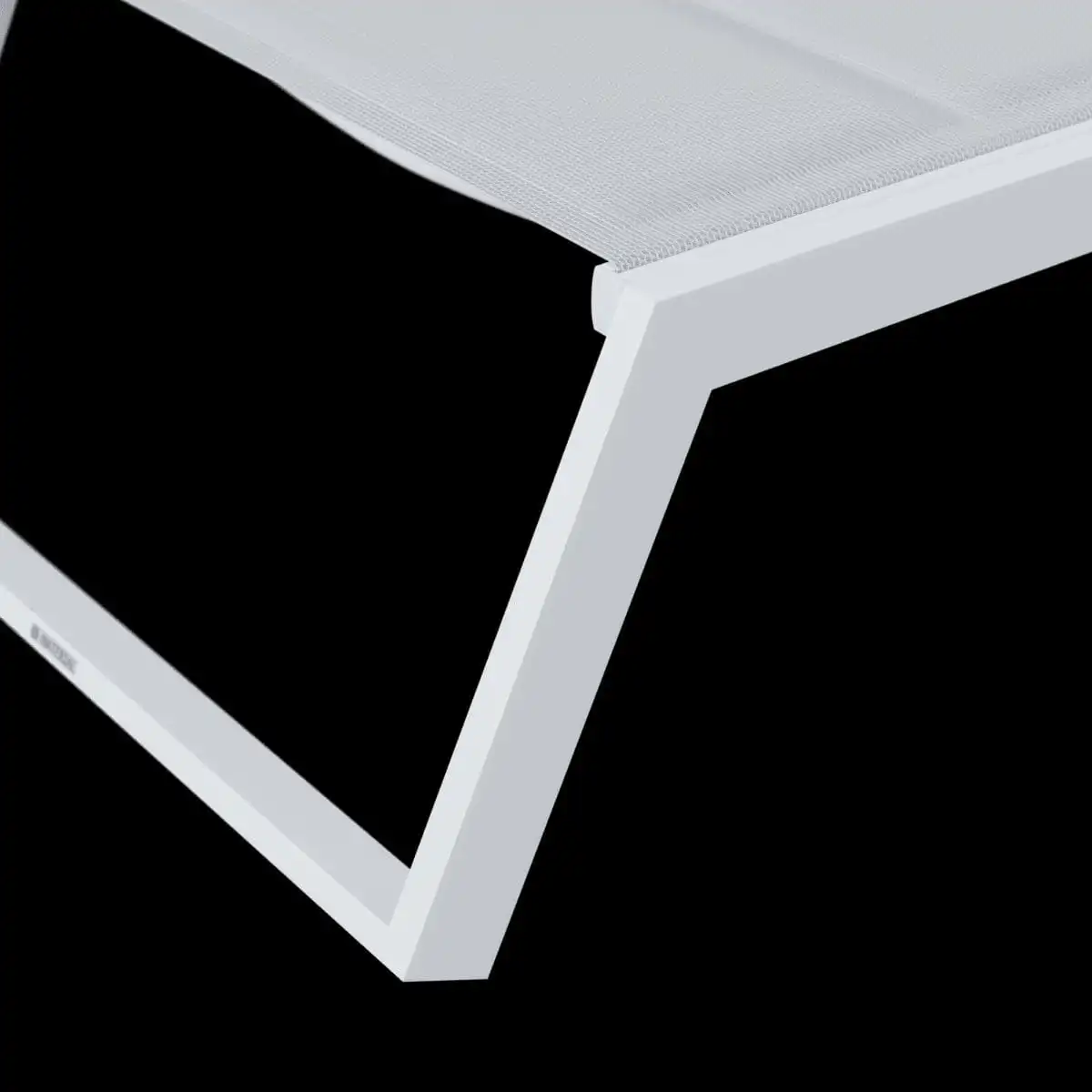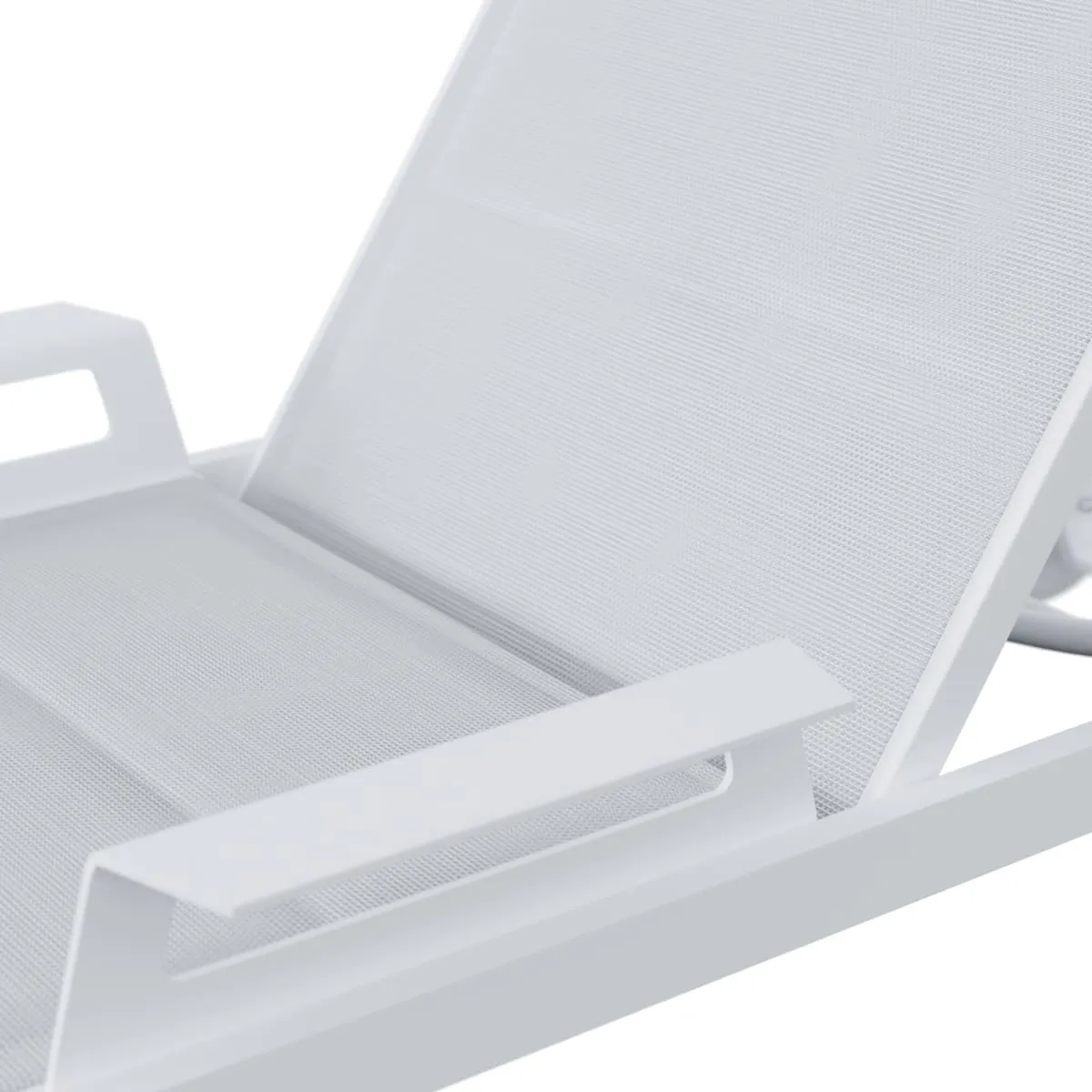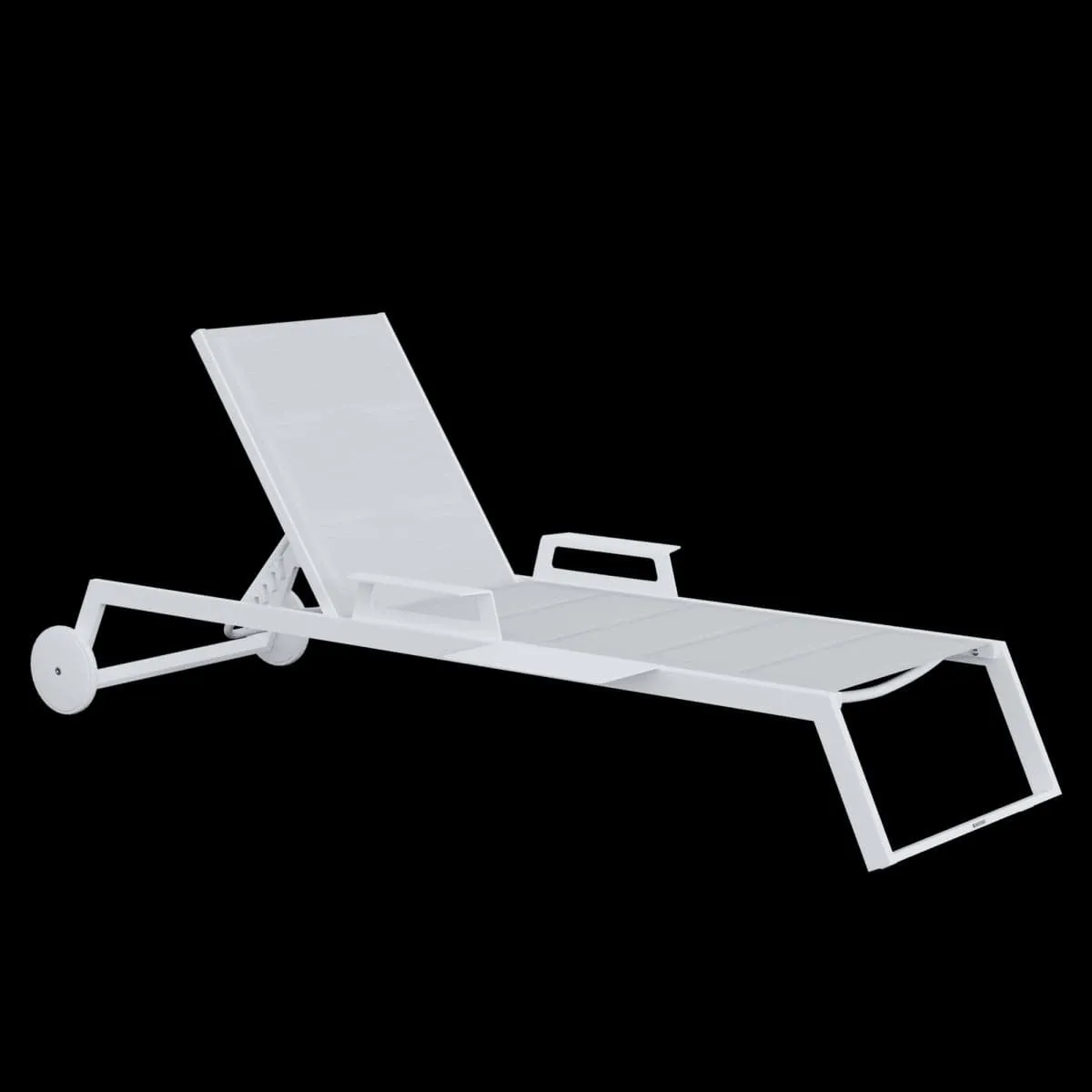 Odyssea NATERIAL cushionless lounger in white aluminum and white seatDesign ideal to be combined with the rest of the ODYSSEA range-Suitable for sunbathing, reading a book and enjoying relaxing moments at the beach, garden or poolside.Armrests and adjustable backrest provide more comfort.