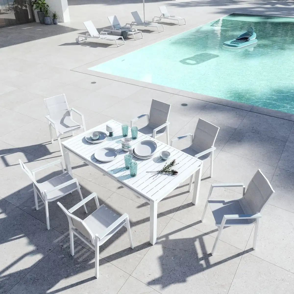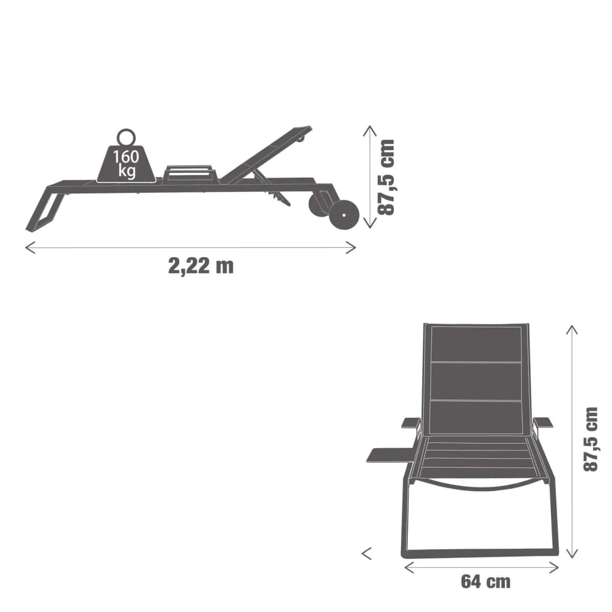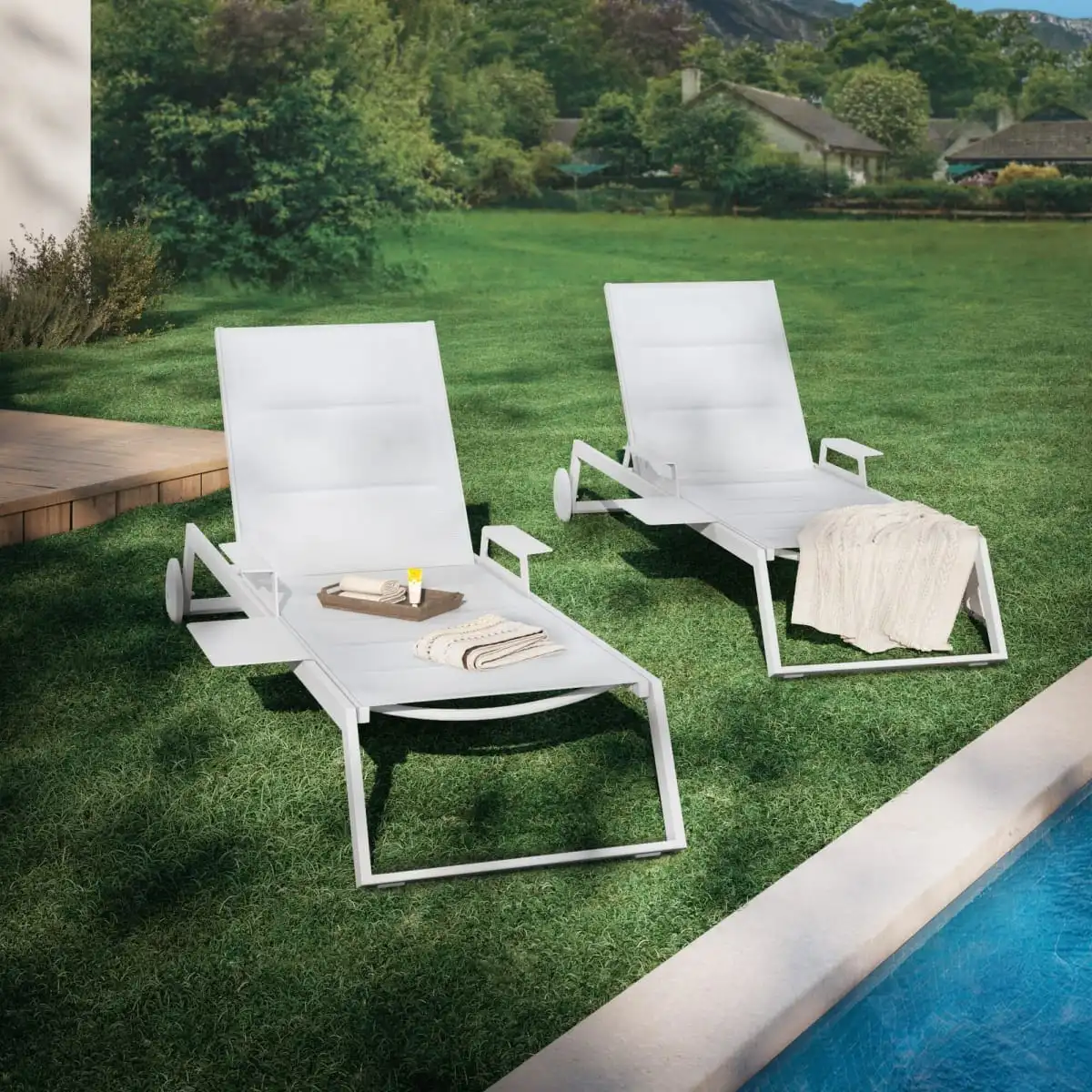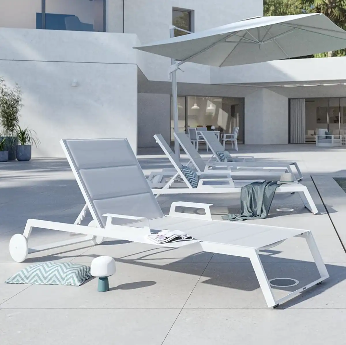 Odyssea NATERIAL cushionless lounger in white aluminum and white seatDesign ideal to be combined with the rest of the ODYSSEA range-Suitable for sunbathing, reading a book and enjoying relaxing moments at the beach, garden or poolside.Armrests and adjustable backrest provide more comfort.
