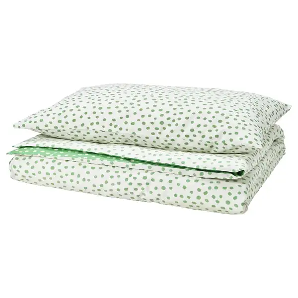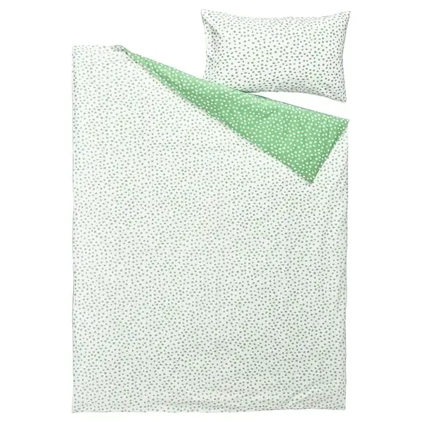 BJÖRKGRÅMAL duvet cover and pillowcase, green white/dotted, 150x200/50x80 cm