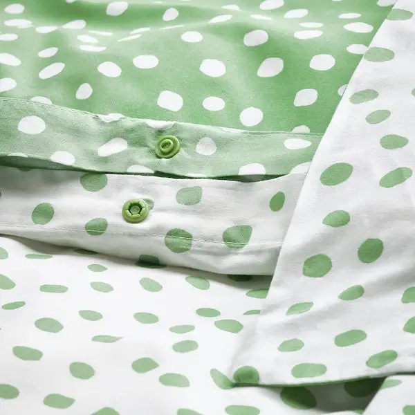 Green dots on a white background or vice versa? Let your mood decide. This duvet cover set goes with most decor and is woven from a cotton/viscose blend that feels wonderfully soft against your skin.