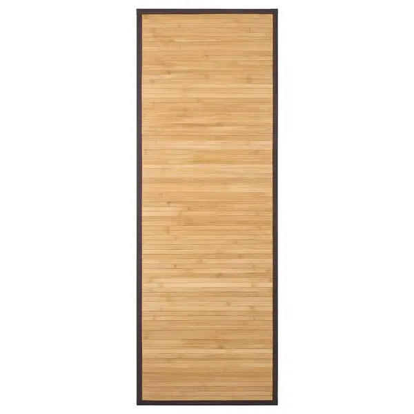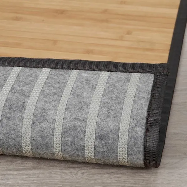 This rug is nice to walk on and pleasantly cool under your feet. Made of durable bamboo with a matching textile edge and anti-slip material on the underside that keeps it in place.