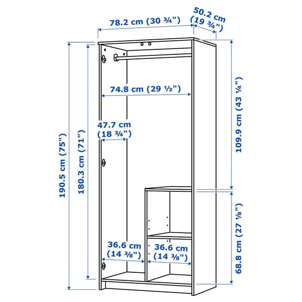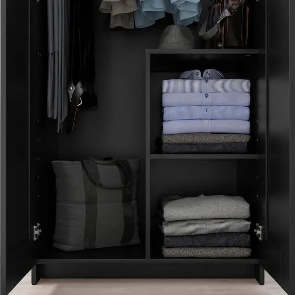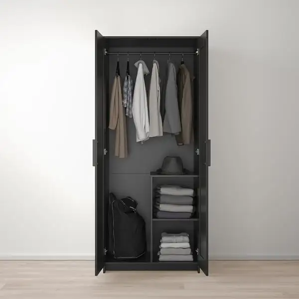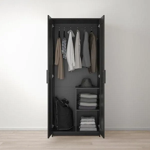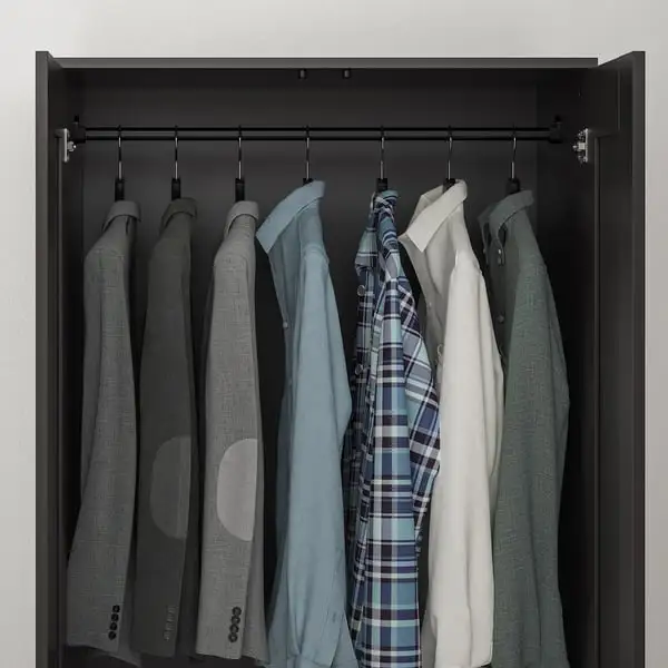 Small spaces need smart storage. This wardrobe has a clothes rail for shirts and dresses, an inner shelf for folded clothes like t-shirts and sweaters – and there is also room to hang your long clothes.