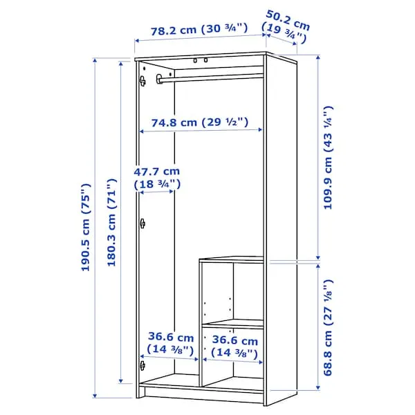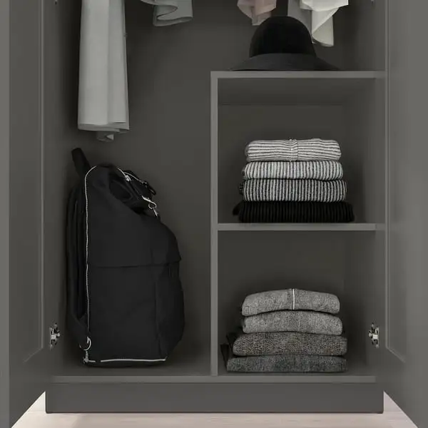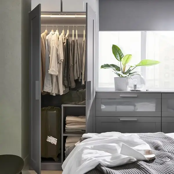 Small spaces need smart storage. This wardrobe has a clothes rail for shirts and dresses, an inner shelf for folded clothes like t-shirts and sweaters – and there is also room to hang your long clothes.