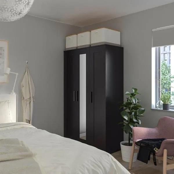 BRIMNES wardrobe with 3 doors, black, 117x190 cm