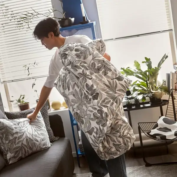 BROKDRACENA duvet cover set offers a fresh take on traditional botanical patterns with embroidery-inspired graphic florals. The smooth polyester/viscose blend has a fine sheen and is wrinkle-resistant.