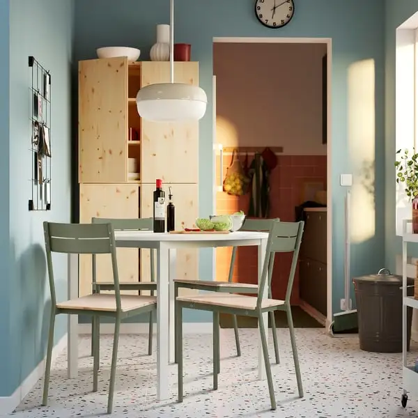 BUSLÄTT chair combines a warm wooden look with robust metal in a neat and modern design that’s pleasing to the eye, even in smaller rooms. The tilted backrest with 2 slats offers a comfy and relaxed feel.