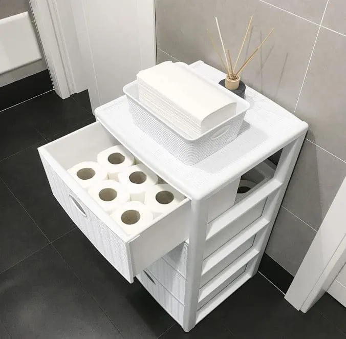 DRAWER 4 DRAWERS ELEGANCE W40XP40XH80 CM WHITEARFine wicker finish chest of drawers intended for multiple uses and with different support options: with or without feet or mobile through the included wheels.Washable