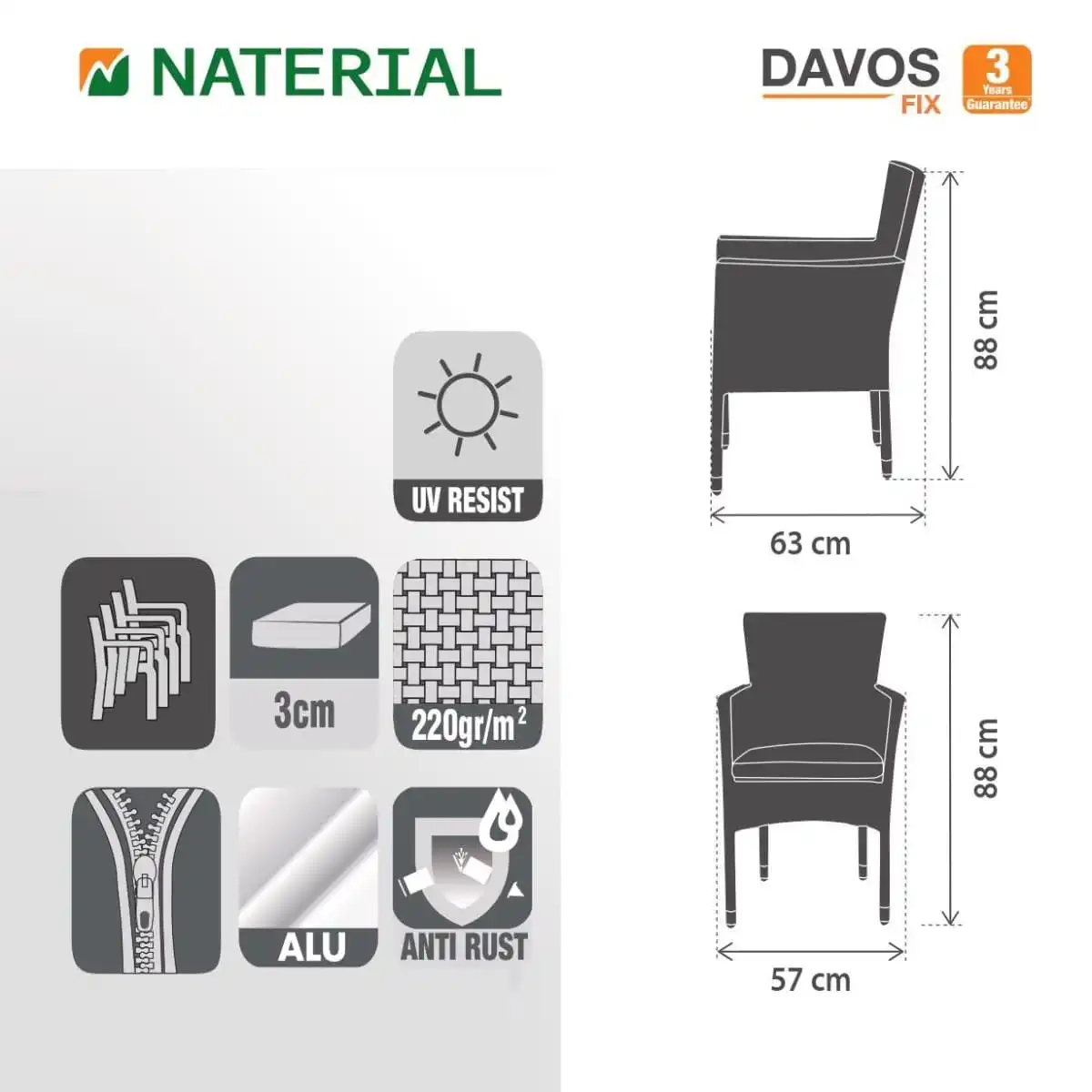 Garden armchair with aluminum cushion Davos NATERIAL anthracite colorIdeal for furnishing a medium or large garden or terrace. Being part of the Davos line, the dimensions of this armchair perfectly match the table of the same series.Its aluminum frame and galvanized steel screws ensure longevity because they are resistant to moisture and rust.Its elegant curves and gray resin weave, inspired by rattan, lend a timeless style to your dining area.