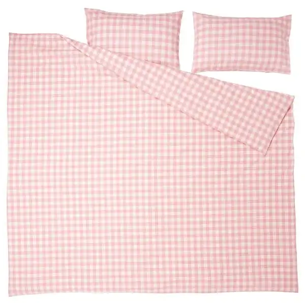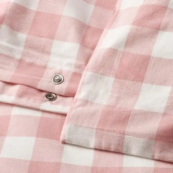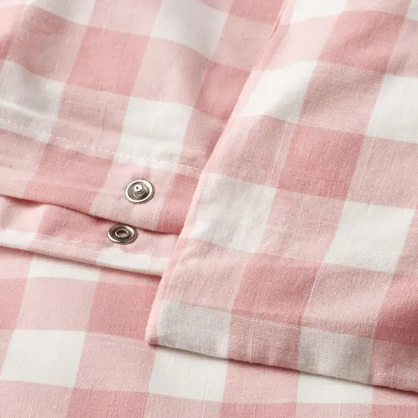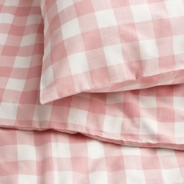 Duvet cover set made of 100% organic cotton certified by GOTS. The natural material breathes, absorbs moisture and feels comfy against your skin. Yarn-dyed gingham check pattern in light pink and white.