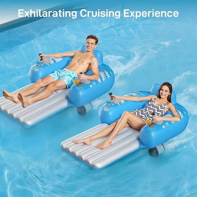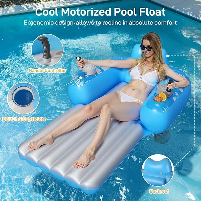 - Motorized Pool Floats, Effortless Water Comfort Gliding: Experience the ultimate relaxation and convenience with our motorized pool float! Designed specifically for adults, this motorized pool lounger feature a powerful dual motorized propulsion system with a 360-degree rotating mechanism. This allows you to glide effortlessly and gracefully in any direction, making it easy to navigate your pool or water body without any strain. Let's embrace the luxury of a truly motorized experience!