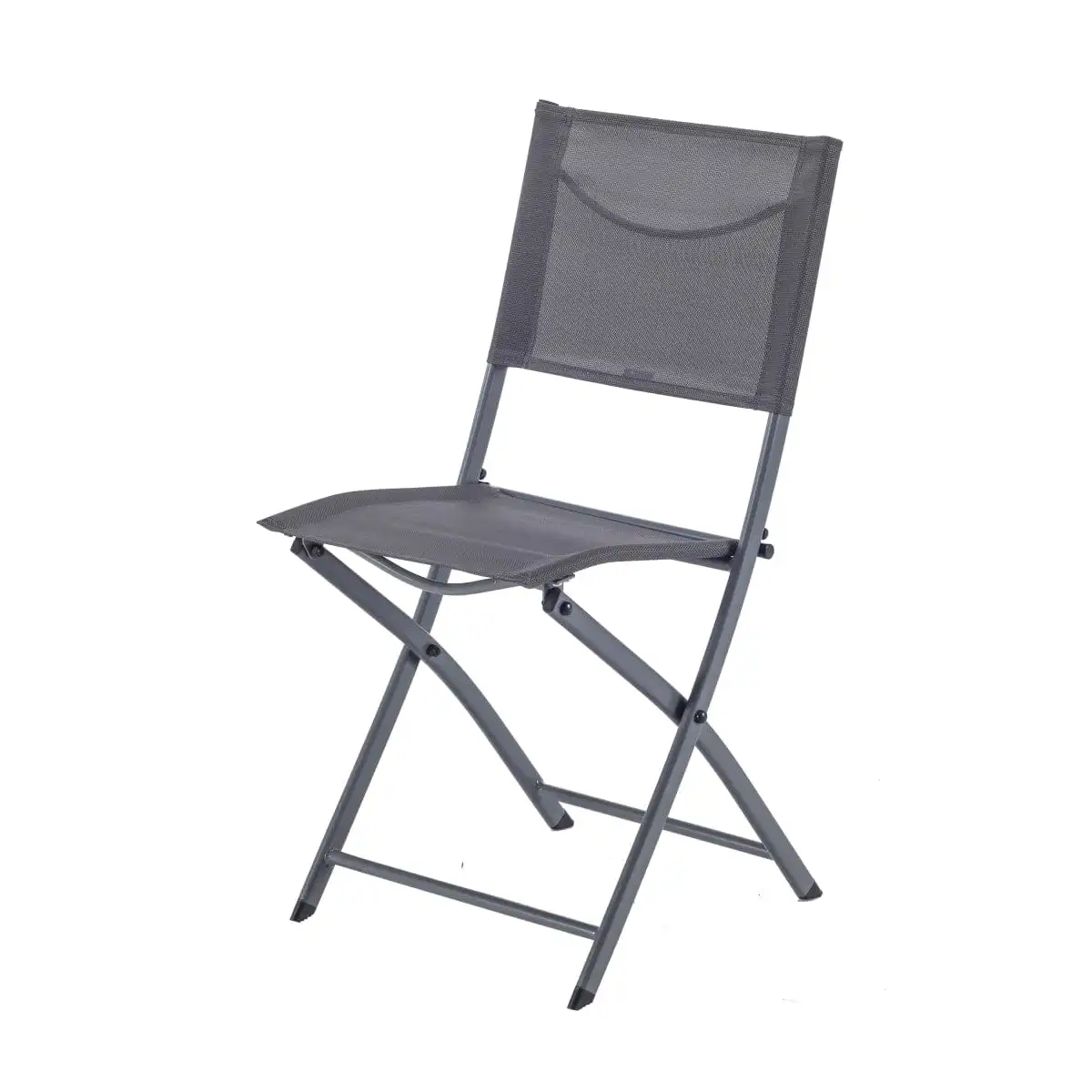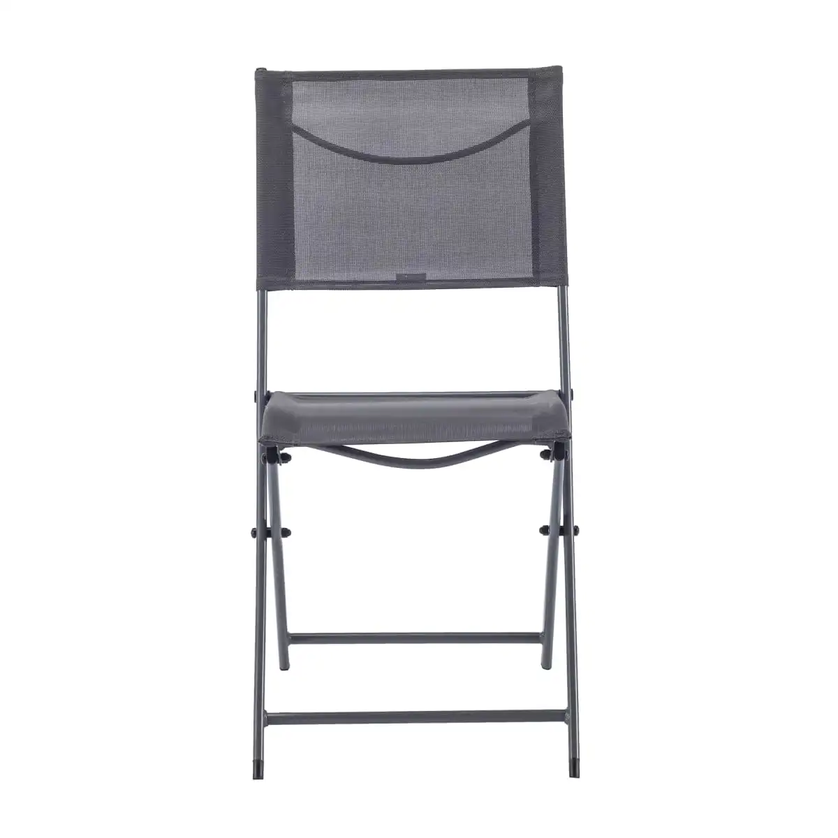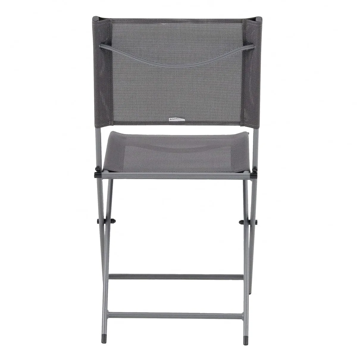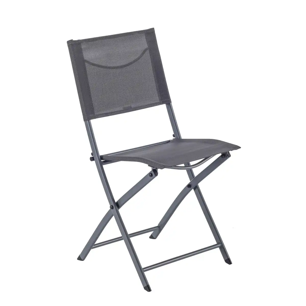 Steel folding cushionless garden chair Emys NATERIAL anthracite colorIdeal for small spaces and occasional uses.Foldable, to ensure maximum space saving when not in useAlready assembled, easy to cleanLightweight, practical, yet comfortable at the same time thanks to the textilene seat
