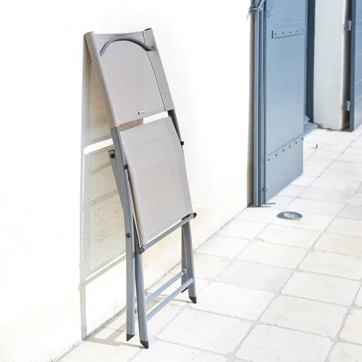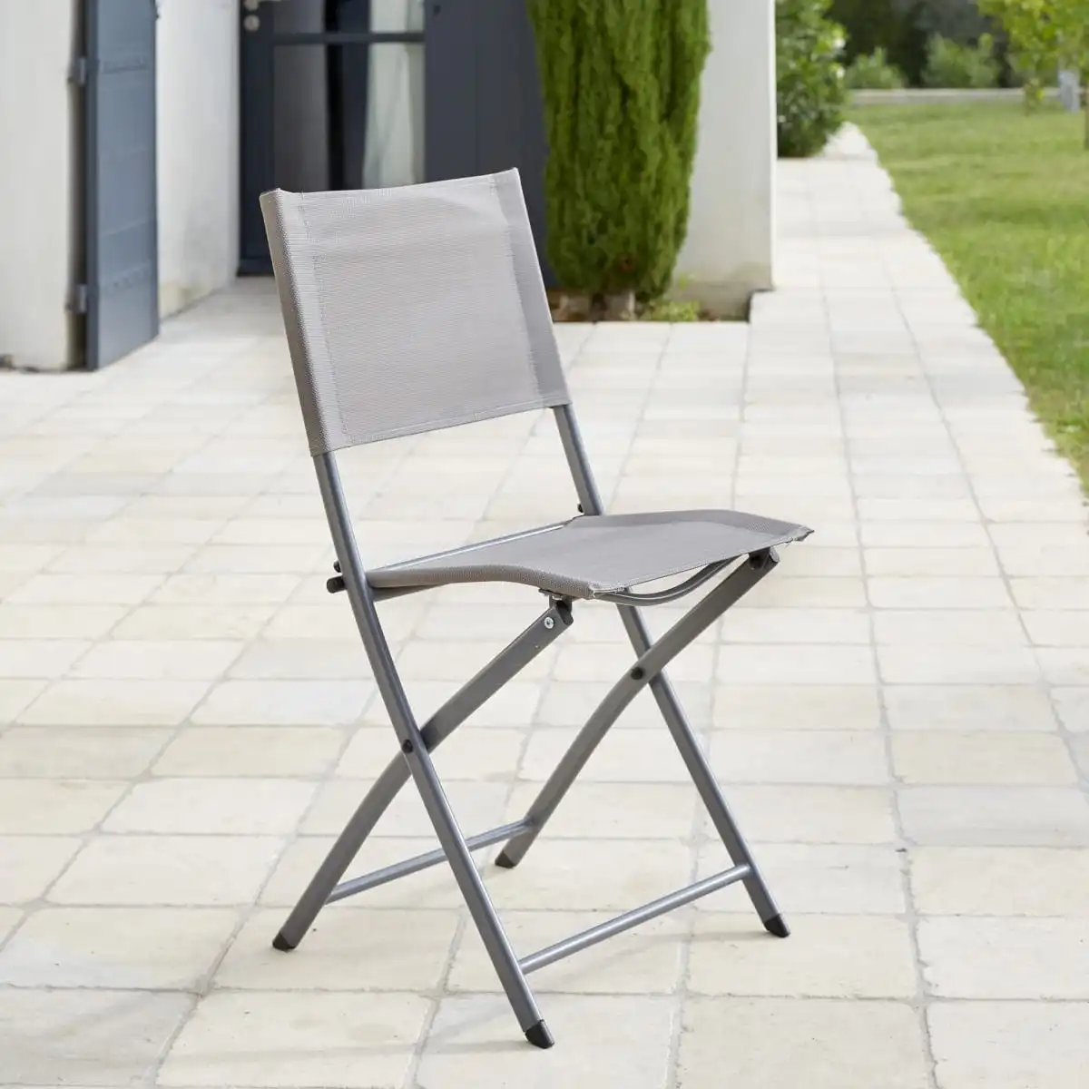 Steel folding cushionless garden chair Emys NATERIAL light gray colorIdeal for small outdoor spaces, such as balconies and small terraces, and occasional uses.Foldable, to ensure maximum space saving when not in use.Already assembled, easy to cleanLightweight and durable.