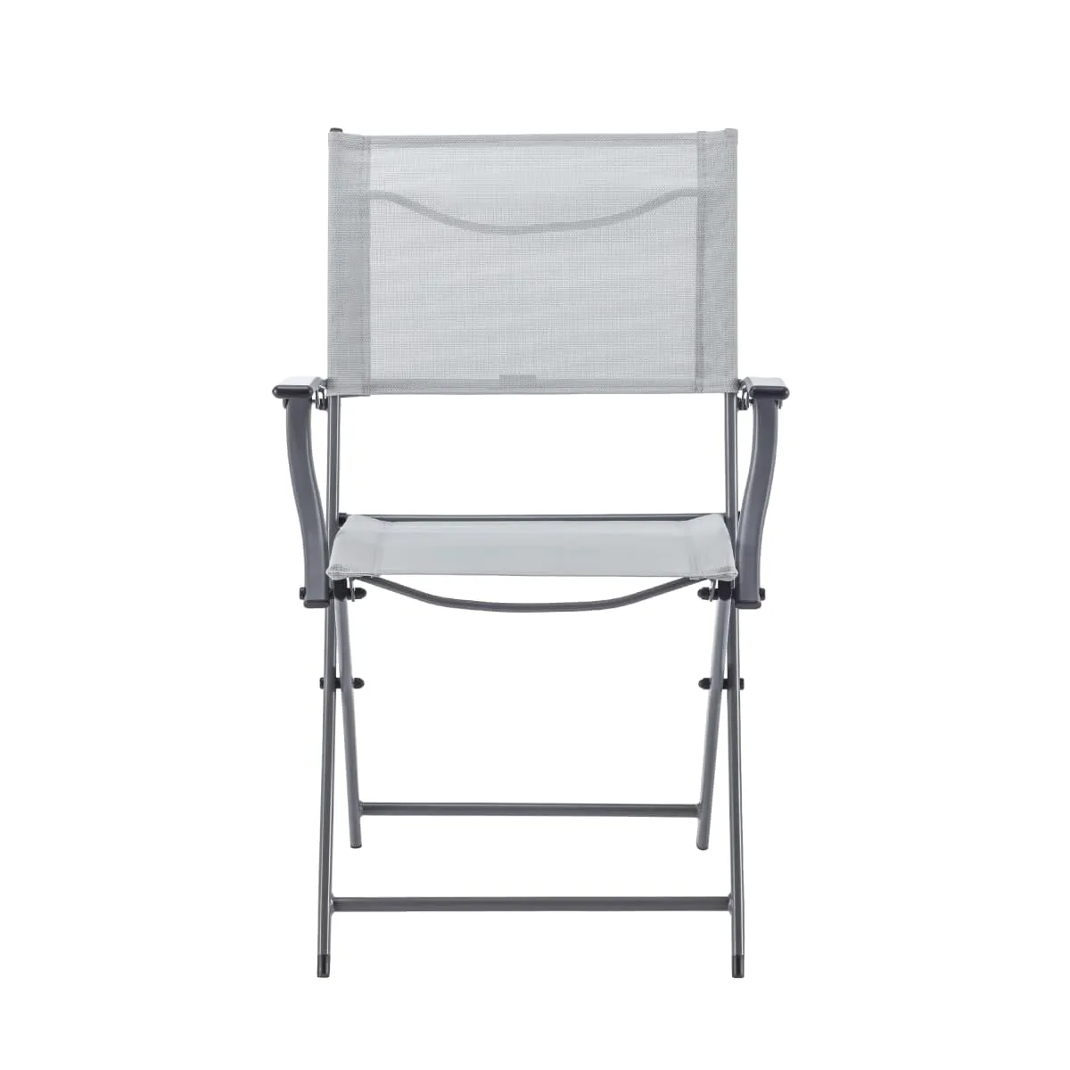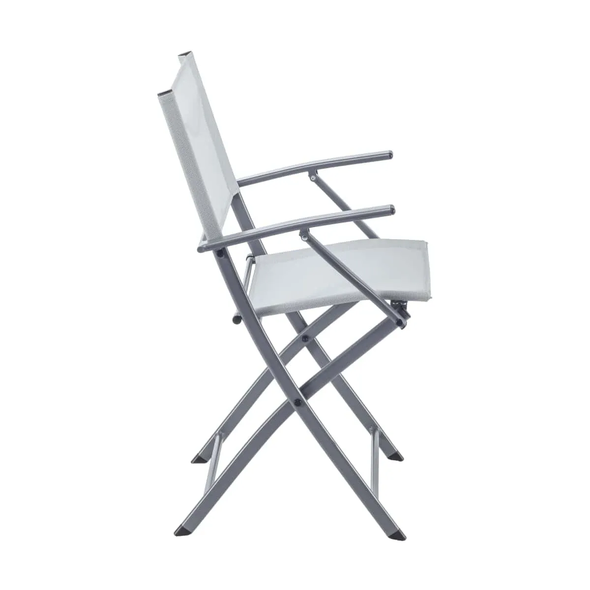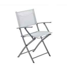 Steel folding chair with arms without cushion Emys NATERIAL light gray colorIdeal for small outdoor spaces and occasional uses.Foldable, to ensure maximum space saving when not in use.Already assembled, easy to clean.Lightweight, practical, yet comfortable at the same time thanks to the textilene seat and armrests.