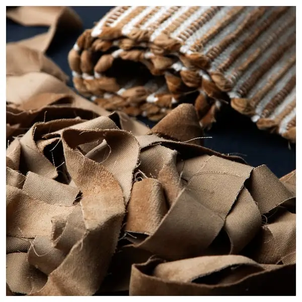 This rug is handwoven with leftover fabric from SANELA cushion covers and curtains – a magical transformation that gives new life to waste and gives each rug a unique expression that has varying colours!
