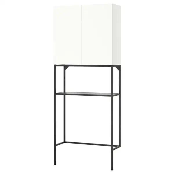 A clever combo that makes good use of the wall space and takes up minimal floor space. Everything is within reach - the messy stuff goes inside the cabinet and everyday essentials are out in the open.