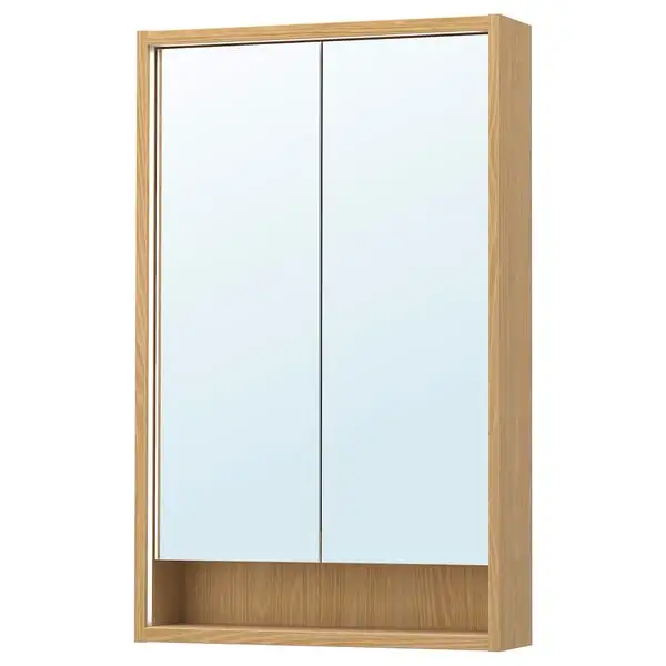 A mirror cabinet that charms with the warm look of wood combined with integrated lighting that brightens the space and helps you to carry out your routines.