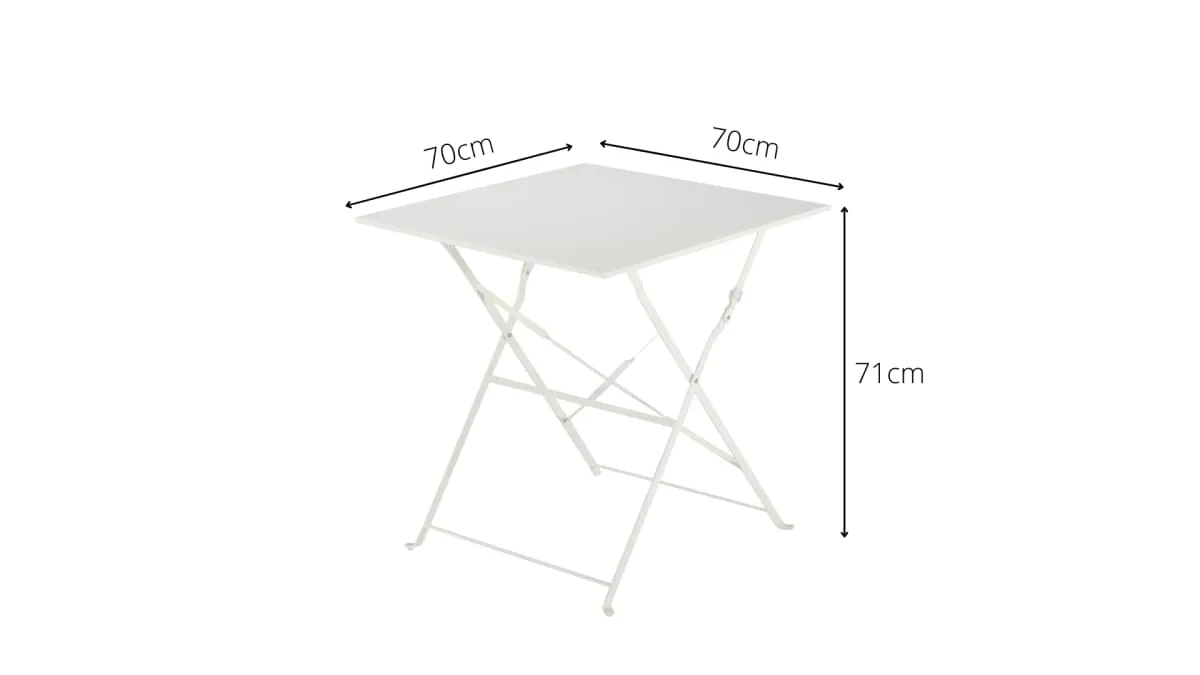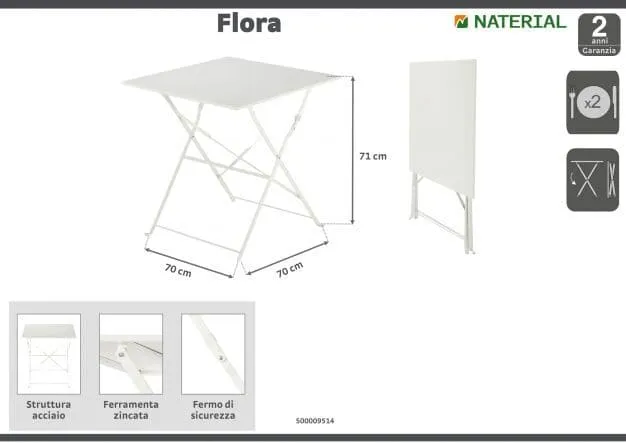 Flora Origami NATERIAL square garden table Flora Origami with steel top W 70 x D 70 cmFor 2 people, suitable for small and medium-sized environments such as balconies, verandas, terraces, gazebos and particular garden cornersEasy to cleanFoldable, to ensure maximum space saving when not in useAlready assembled.