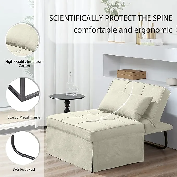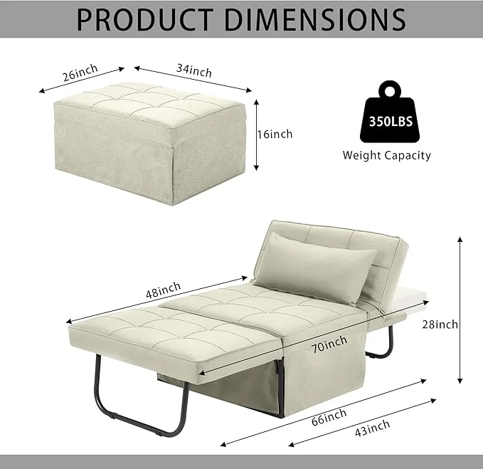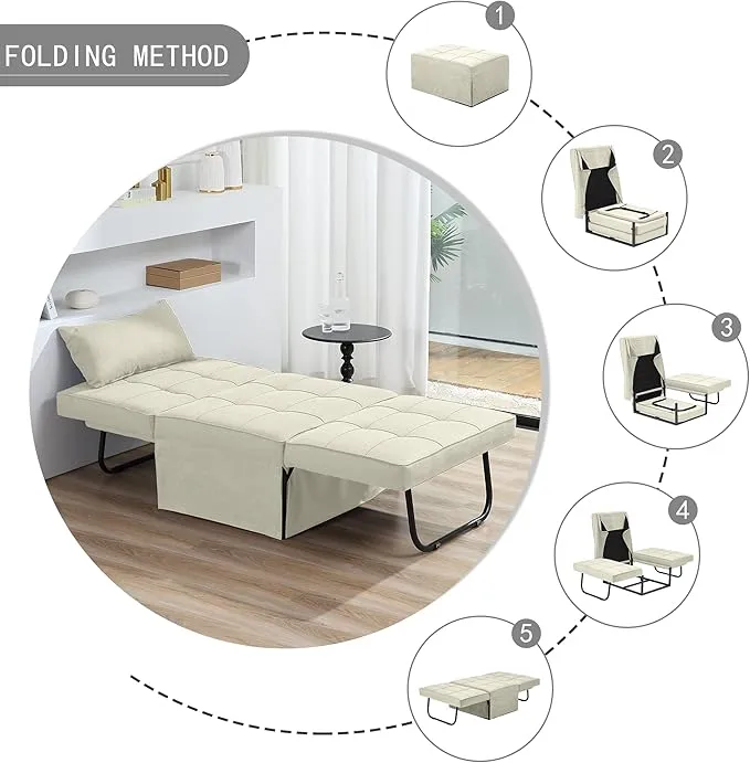 Multifunctional Design: This convertible sofa bed transitions between a chair, ottoman, lounger, and single bed, providing versatile seating and sleeping options for small spaces like dorms, apartments, and home offices.