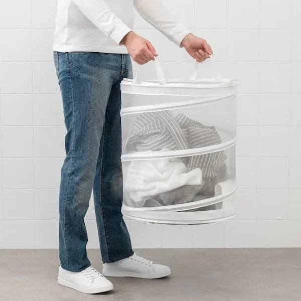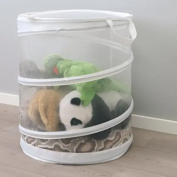 This lightweight basket with handles is easy to carry and the airy construction allows your clothes to breathe. It was designed for laundry, but is durable and known to be used for soft toys too.