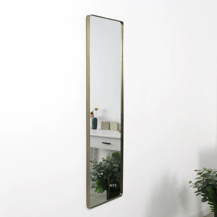 Glam gold metal mirror 40x130 cmIdeal for mirroring and decorating.Its rectangular shape with rounded corners and its thin golden frame will bring a touch of glamour and elegance to your room.