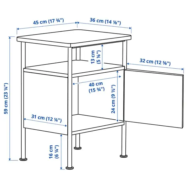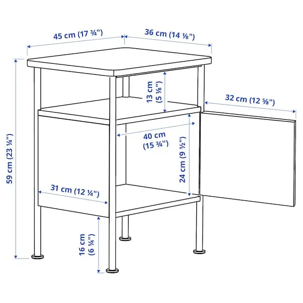 The GRÅFJÄLLET series combines industrial influences with clean and bold lines that create a timeless look. The bedside table has open storage on two levels and a generous hidden area behind the door.