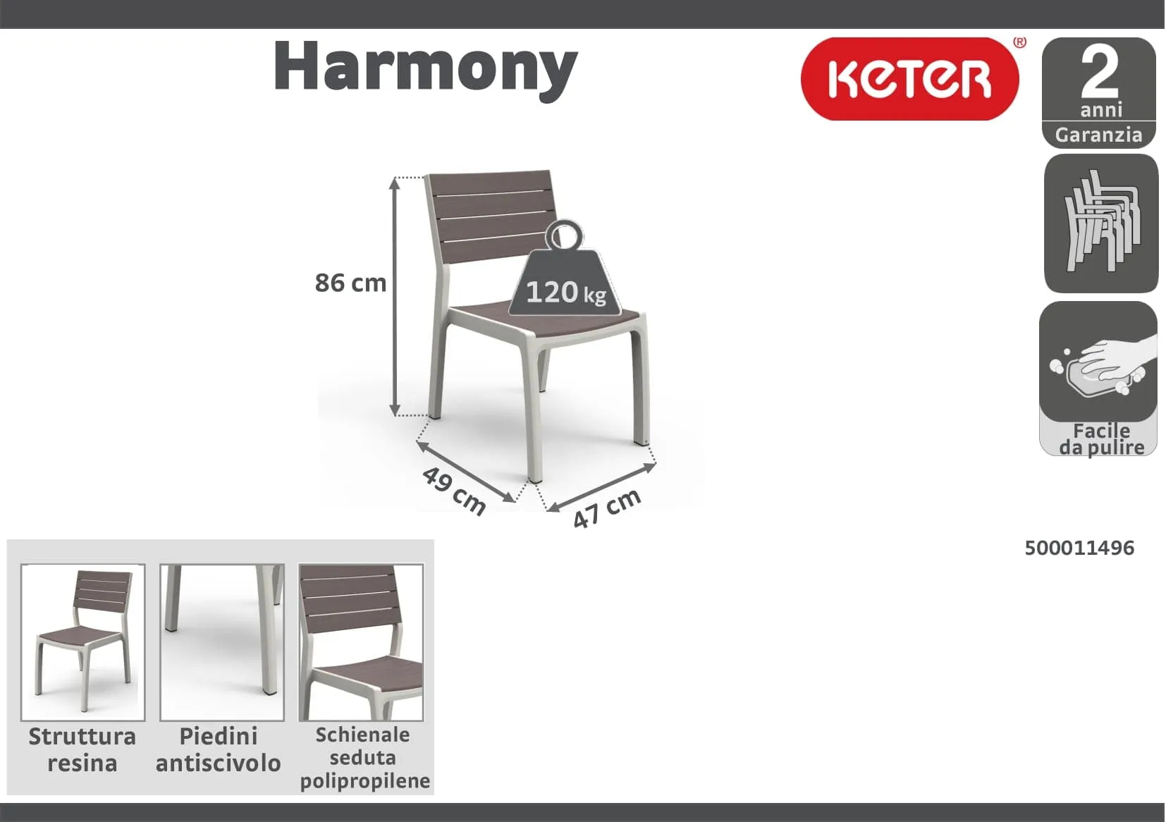 Harmony KETER polypropylene chair white/cappuccino colorIdeal for complementing outdoor table decorLightweight, stackable, weatherproofWood effect designApproachable to the Harmony line extendable table